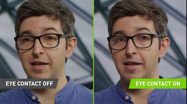 and (IMO - best till last) make it appear as if you're looking directly at the camera with the Eye Contact (beta) feature. That's right, Eye Contact (beta) uses AI to ensure that you're making direct eye contact with your audience, even when you're glancing to the side or taking notes. 👁👁